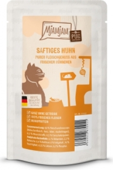 MjAMjAM – purer Fleischgenuss aus saftigem Hühnchenfleisch Diese Mahlzeit bietet deinem Liebling den puren Fleischgenuss. 100 % frisches Fleisch, für ein einzigartiges und exklusives Genusserlebnis, das ihn zugleich mit allen wichtigen Vitaminen und Mineralien versorgt. MjAMjAM – leckere Mahlzeiten für deinen Liebling: Artgerecht, Natur- und Beutenah.