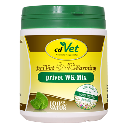 priVet WK-Mix wurde für den speziellen Ernährungsbedarf entwickelt, der im Zusammenhang mit Wurmbesatz entsteht. Der Mangel an Kräuterinhaltstoffen, wie Saponine, Bitterstoffe und Gerbstoffe, kann bei unseren Haustieren zu einer Anfälligkeit für überhöhten Wurmbesatz führen. Im Gegensatz zu ihren in der Wildnis lebenden Artgenossen haben sie oftmals nicht die Möglichkeit, die genannten Stoffe durch Pflanzen und Kräuter aufzunehmen. Doch gerade diese Stoffe tragen bei ihren wilden Verwandten dazu bei, einen übermäßigen, krankhaften Wurmbesatz durch gesunde Ernährung zu vermeiden.